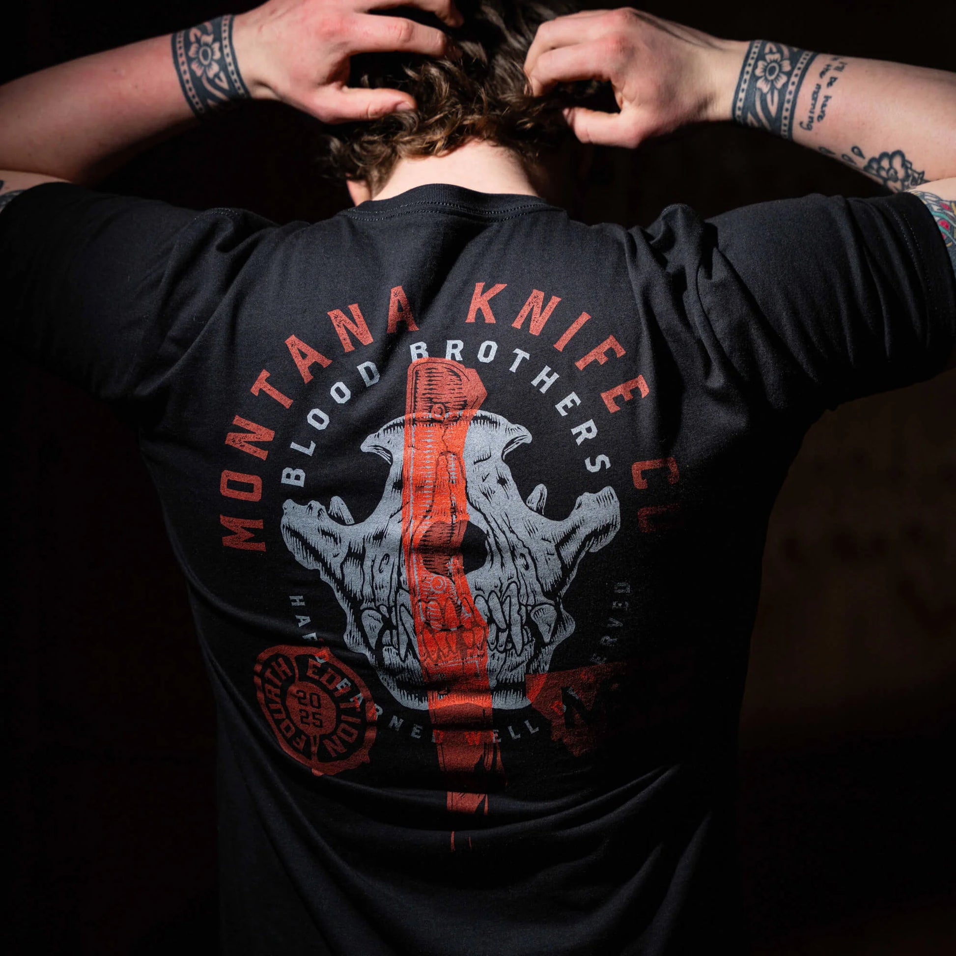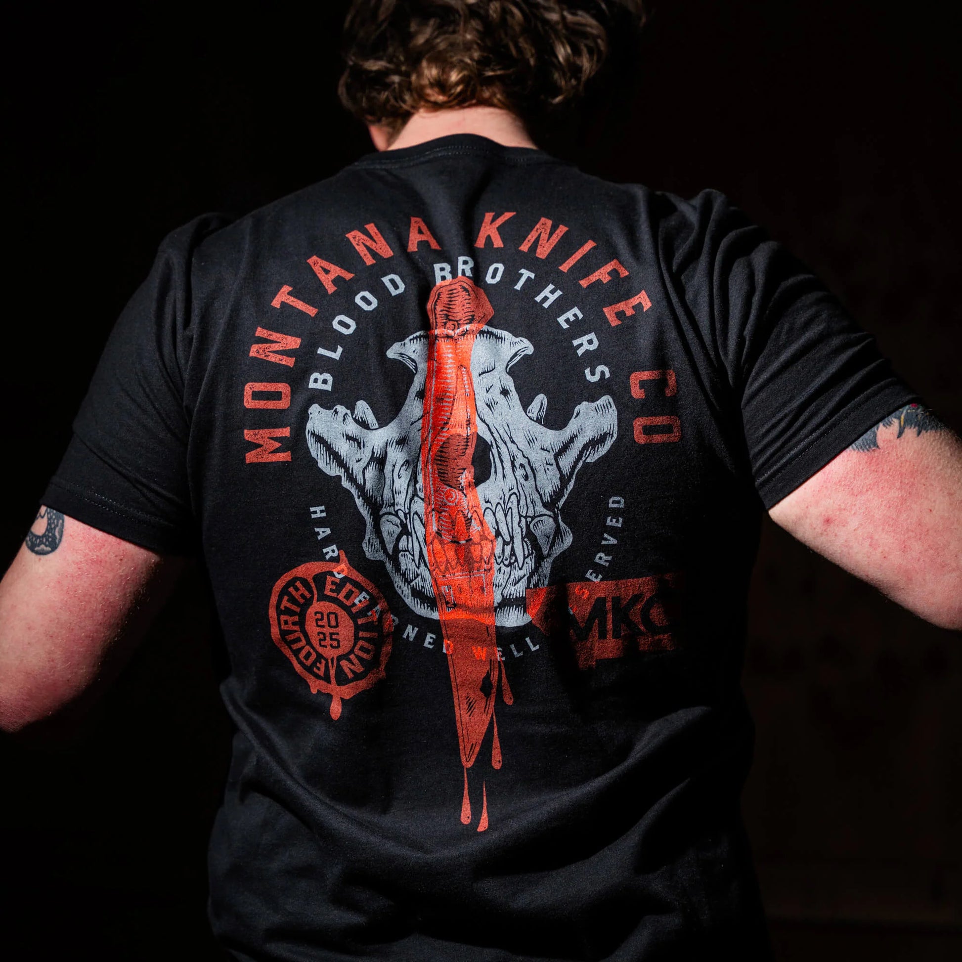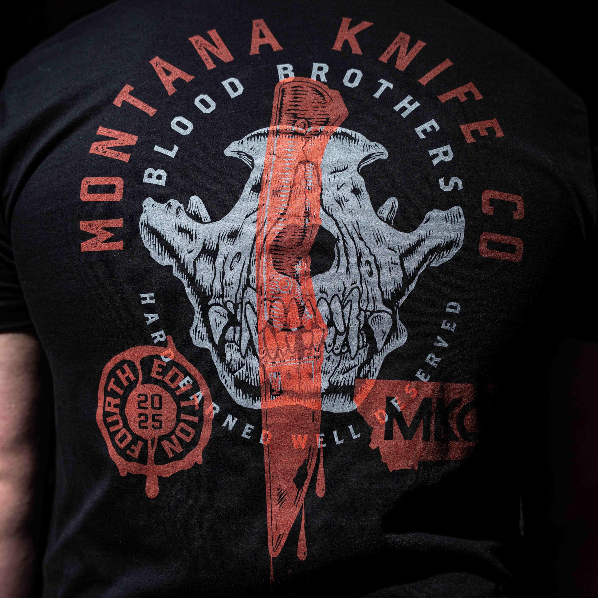 Design: Featuring an extra-large front print and a small arm print, this shirt showcases the Montana Knife Company logo.