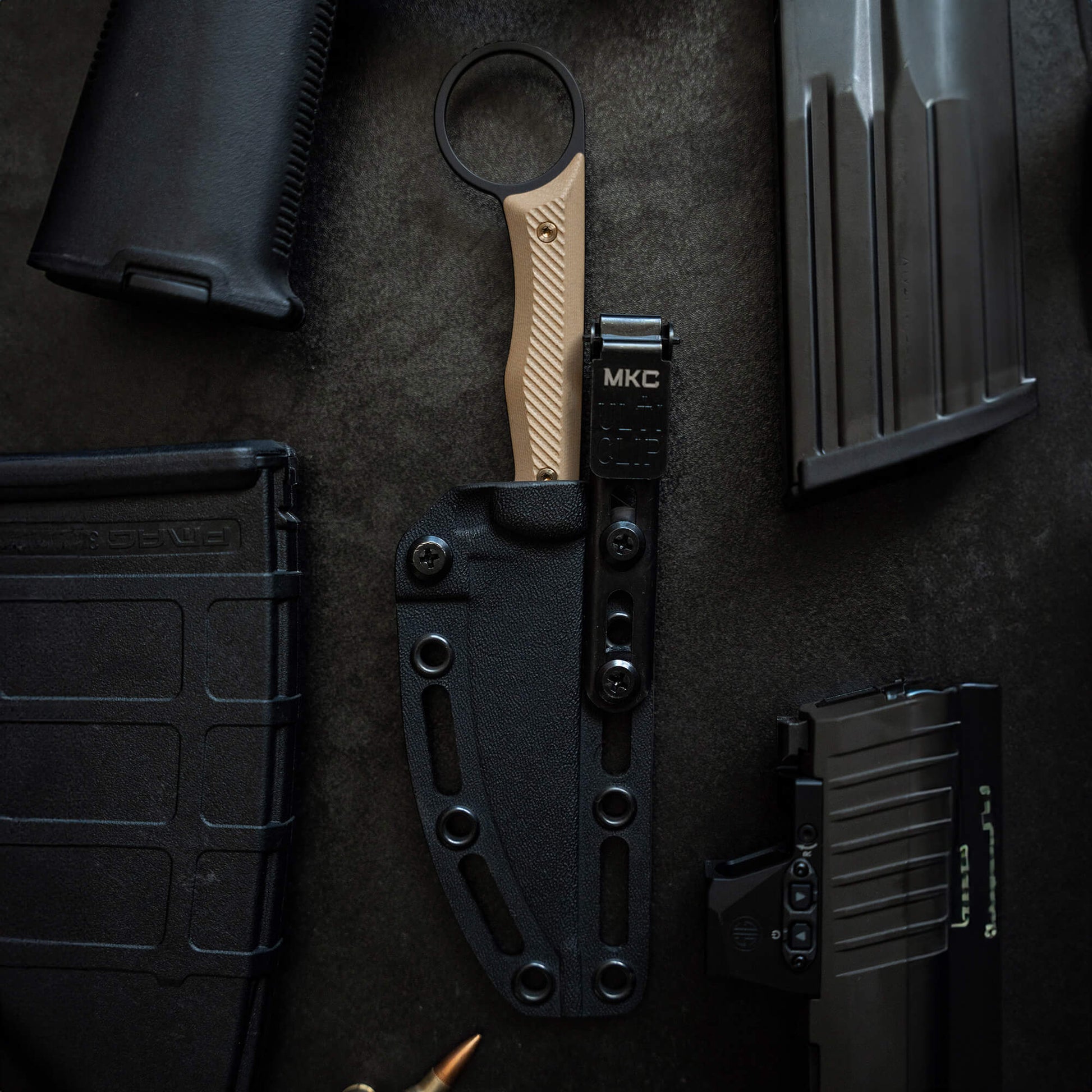 splitFrom the wilderness of Montana comes a knife built for one purpose - to defend your life when all other options are exhausted. Introducing the Wargoat, the first addition to MKC's official line of tactical knives, designed to be your final line of defense in the most dire situations. Born from the need for a compact, ultra-concealable blade, the Wargoat takes inspiration from the relentless mountain goats that roam the punishing peaks. Like its namesake, this knife is built to thrive in even the most hostile environments, always ready to fight.